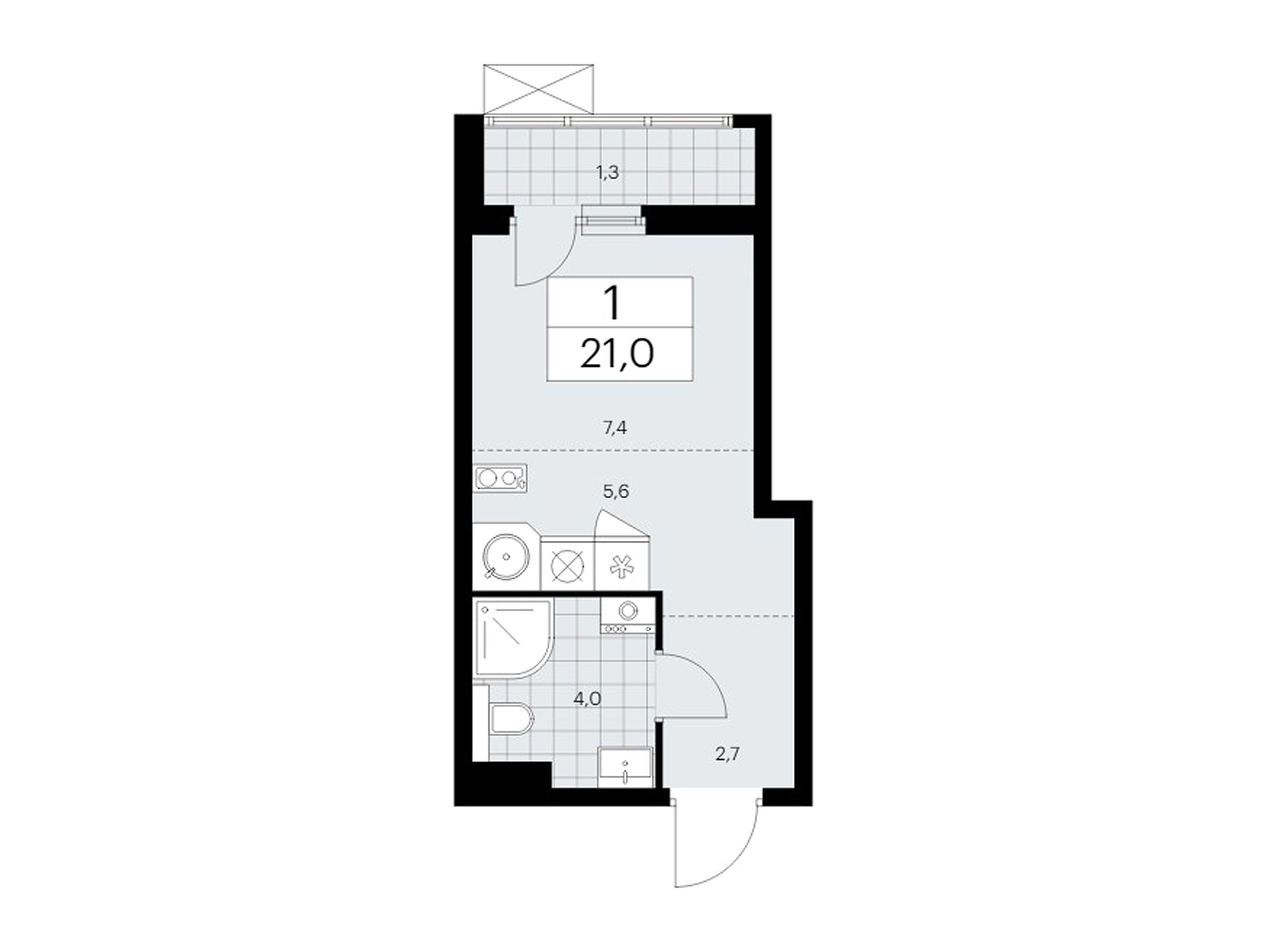Студия, 20.90 м²