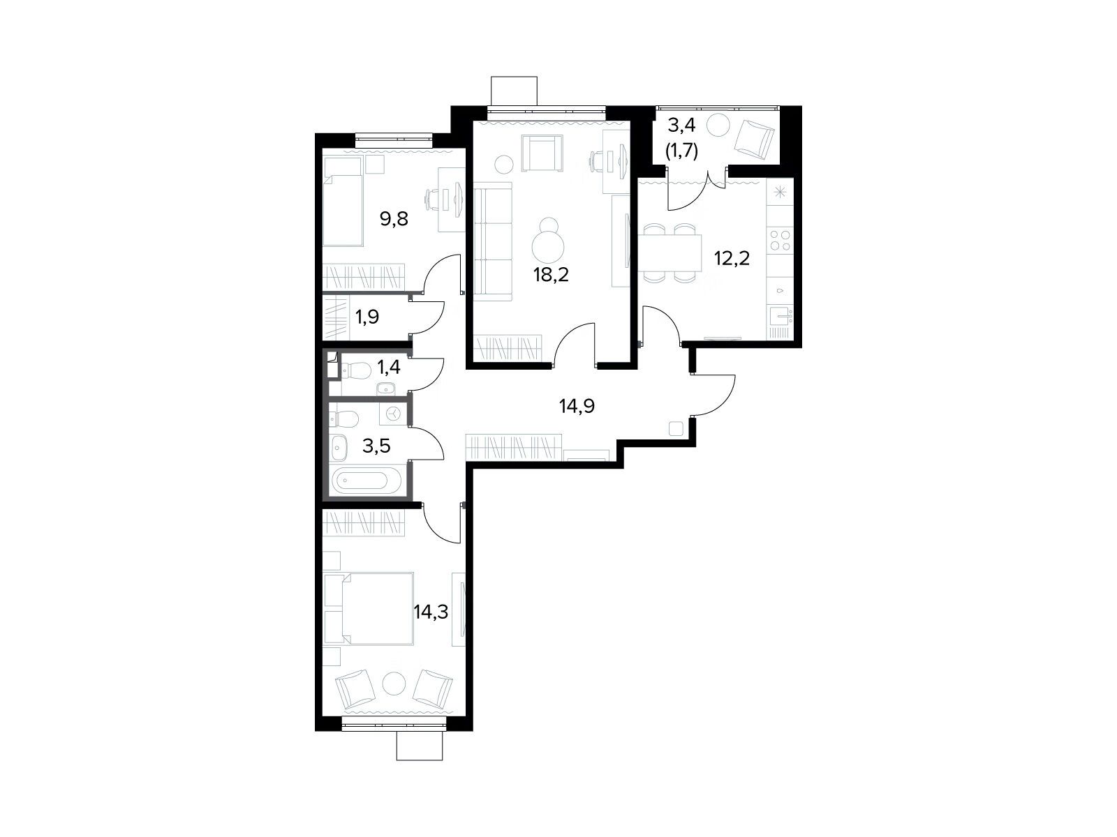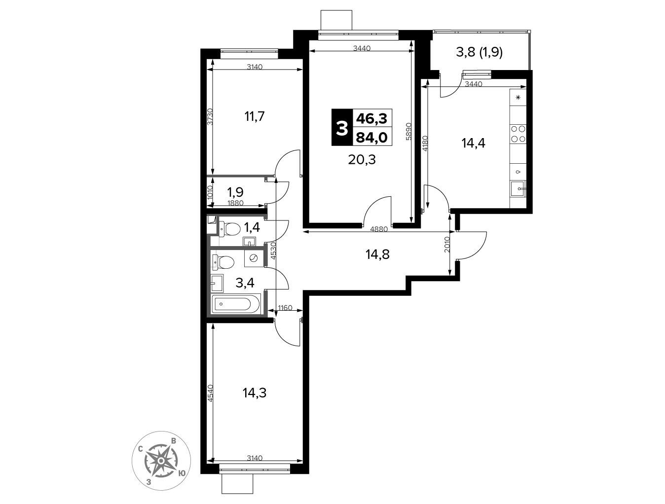 3-комнатная квартира, 84.30 м², 11 из 24 эт.