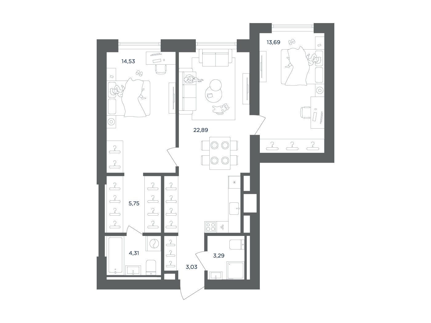 2-комнатная квартира, 64.74 м², 21 из 51 эт.