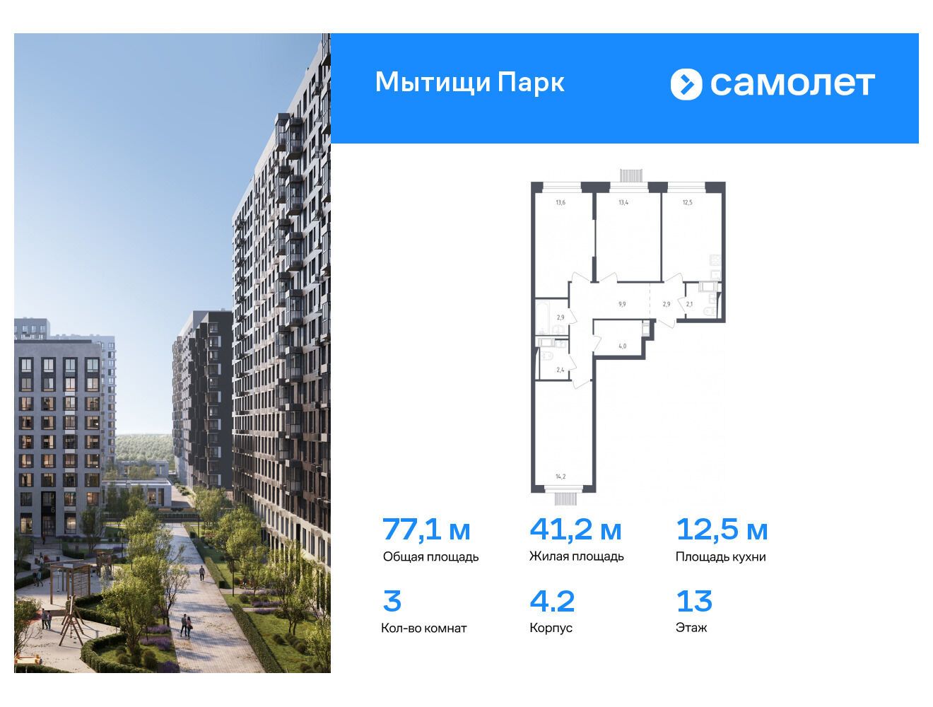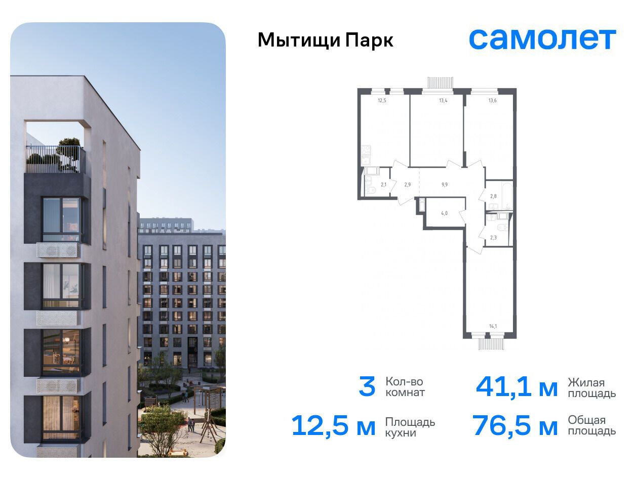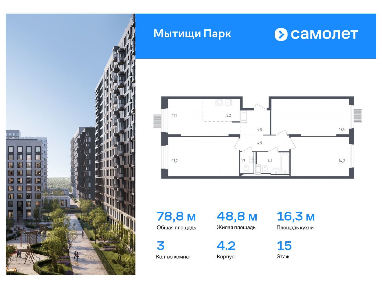 3-комнатная квартира, 74.20 м², 7 из 17 эт.