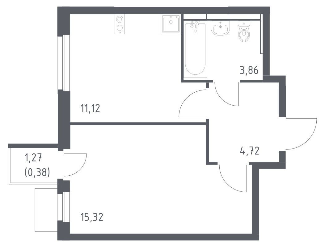 1-комнатная квартира, 33.90 м², 16 из 17 эт.