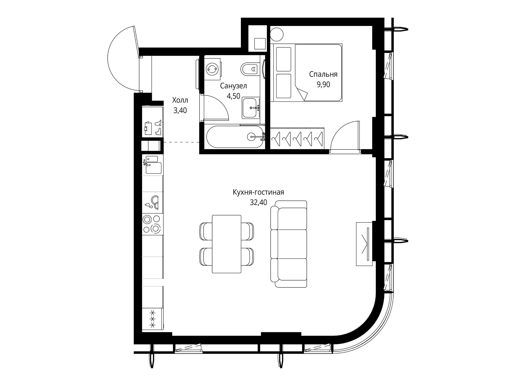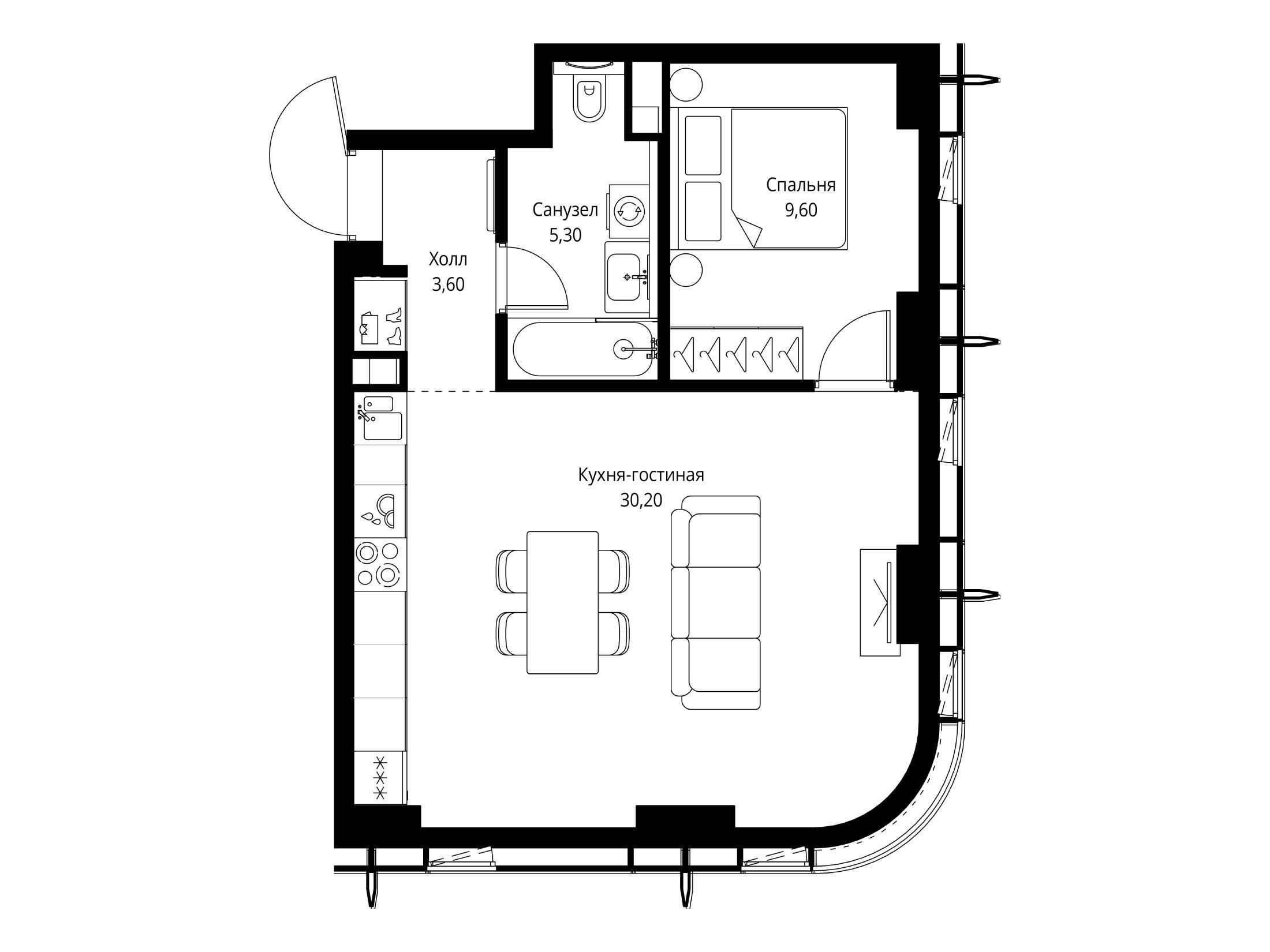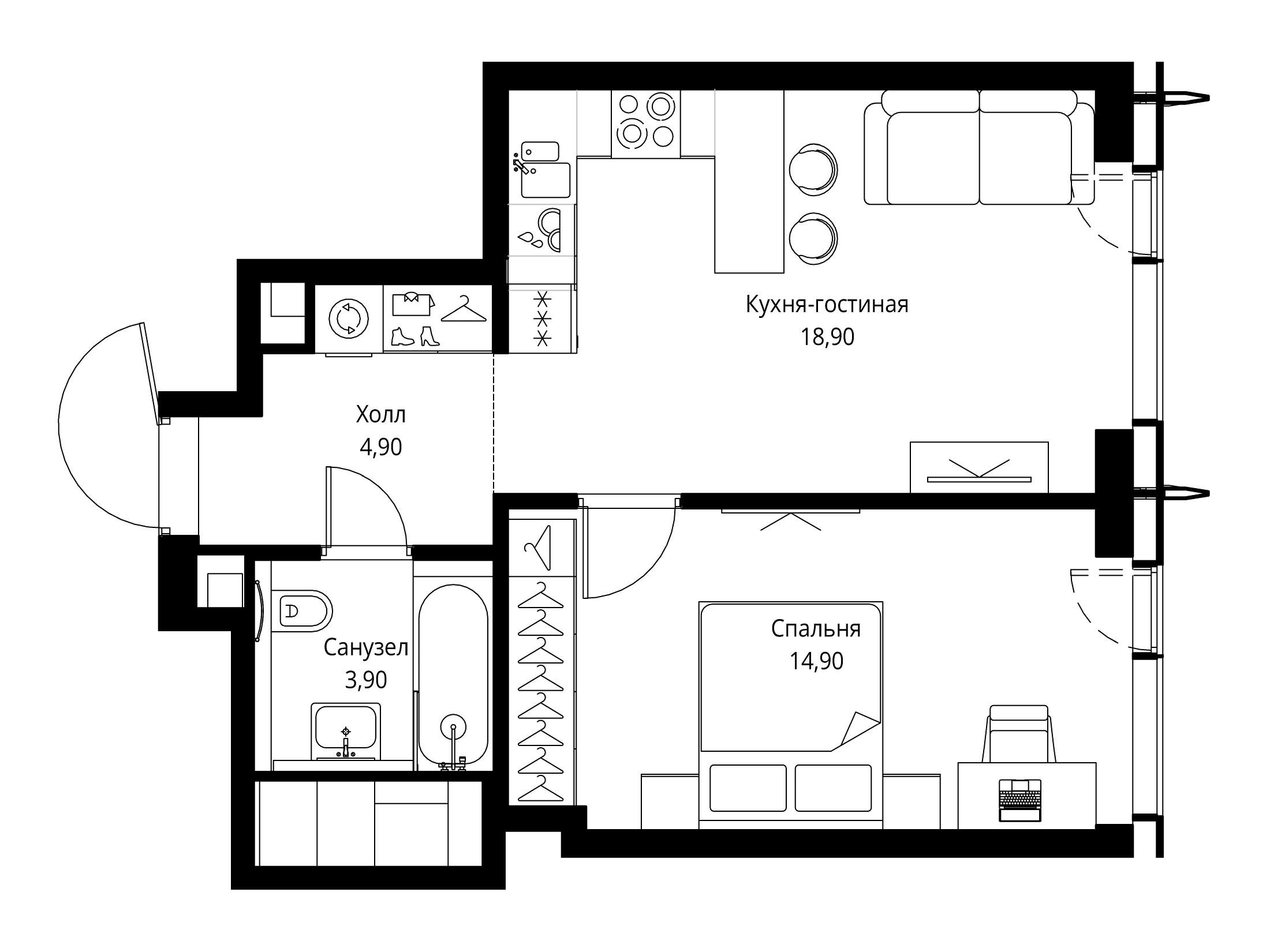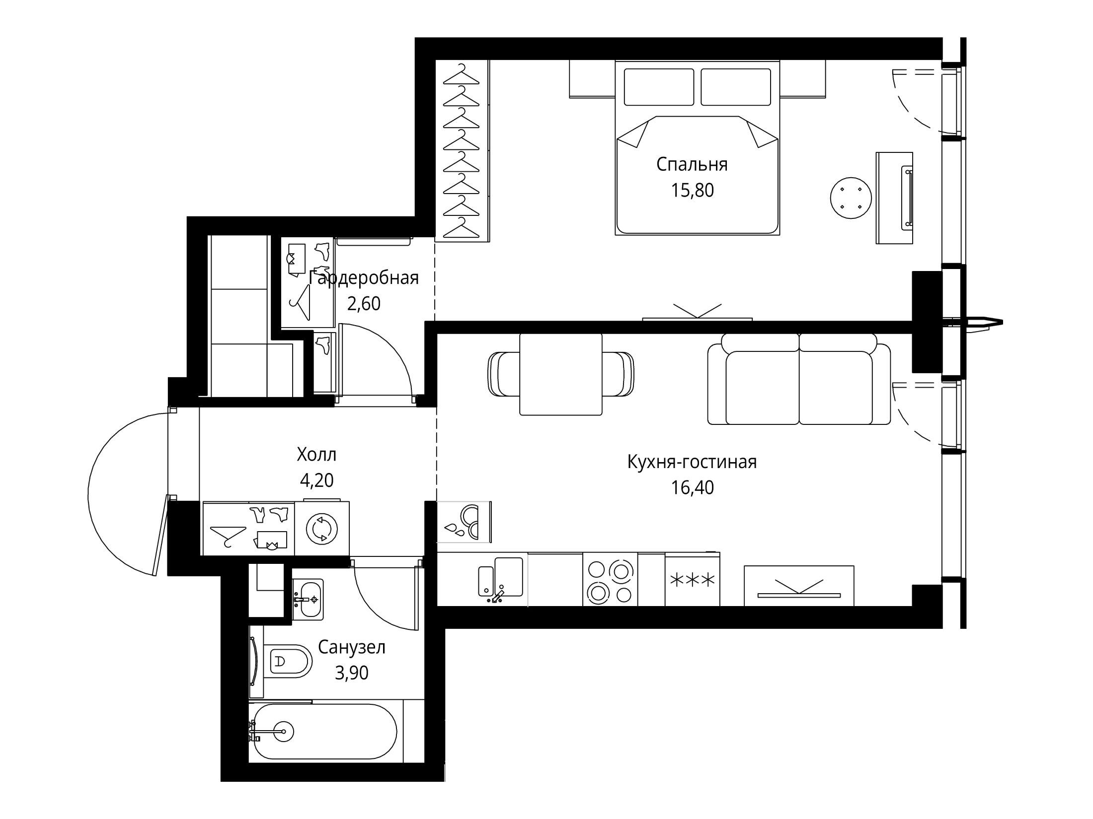 1-комнатная квартира, 33.10 м², 28 из 59 эт.