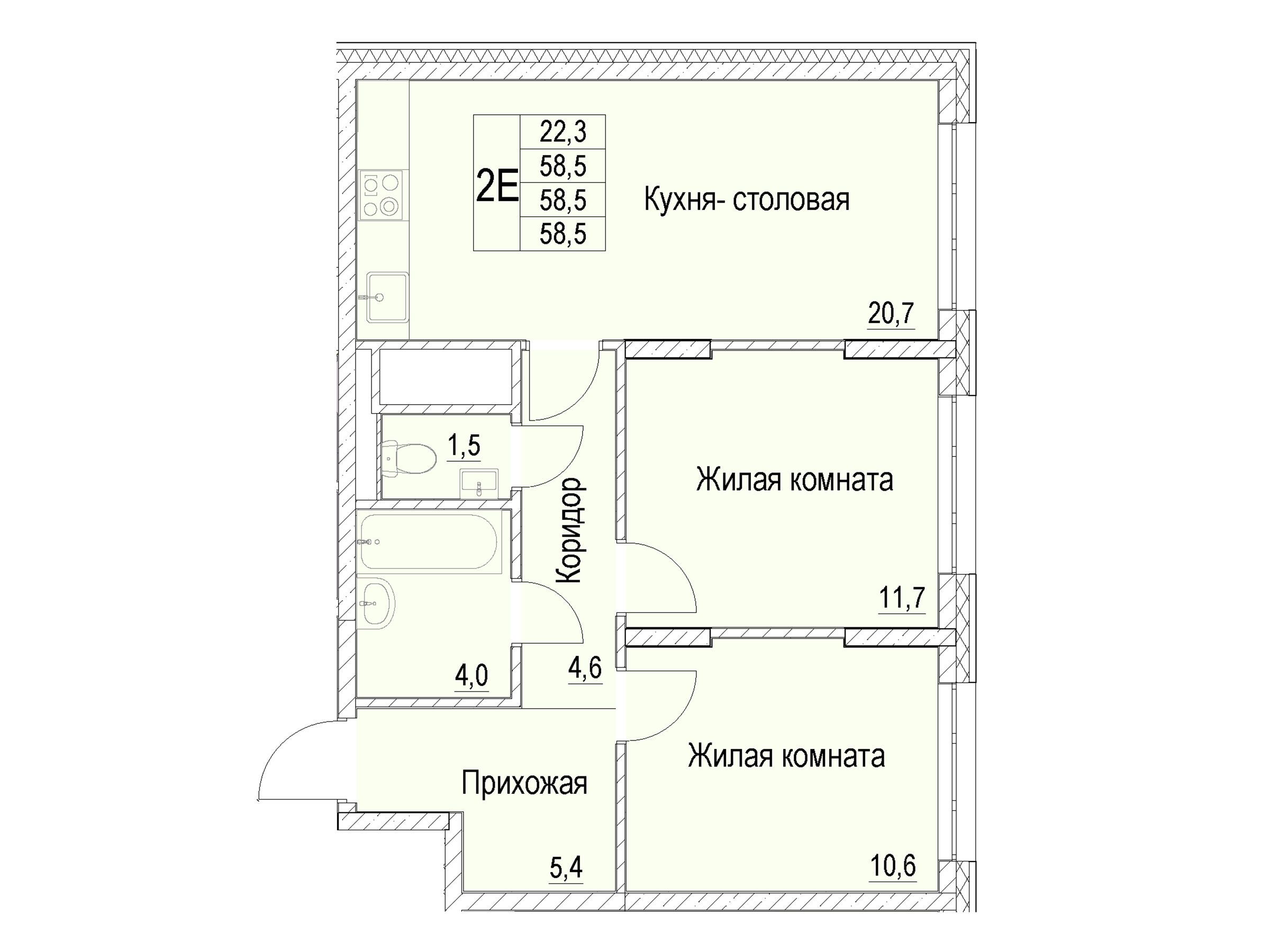 2-комнатная, 56.10 м²
