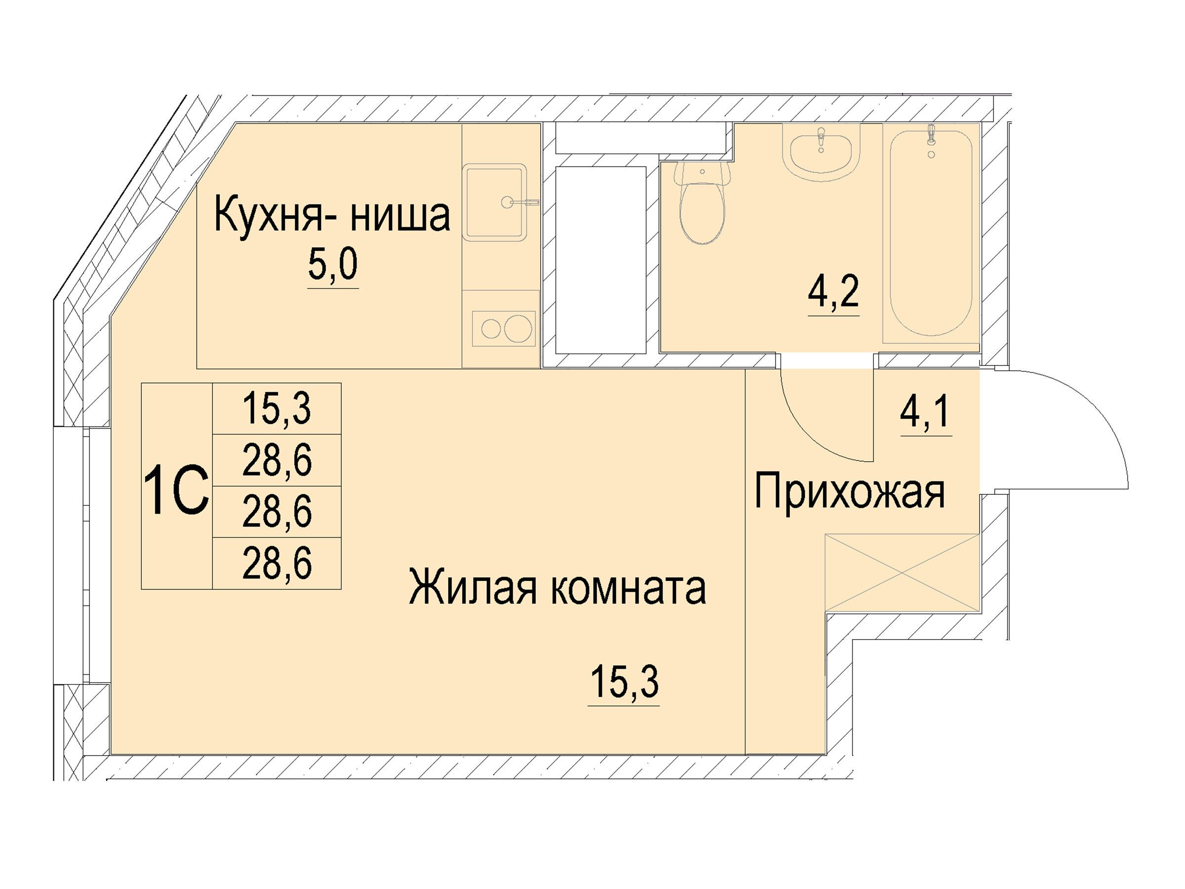 Студия, 28.60 м²