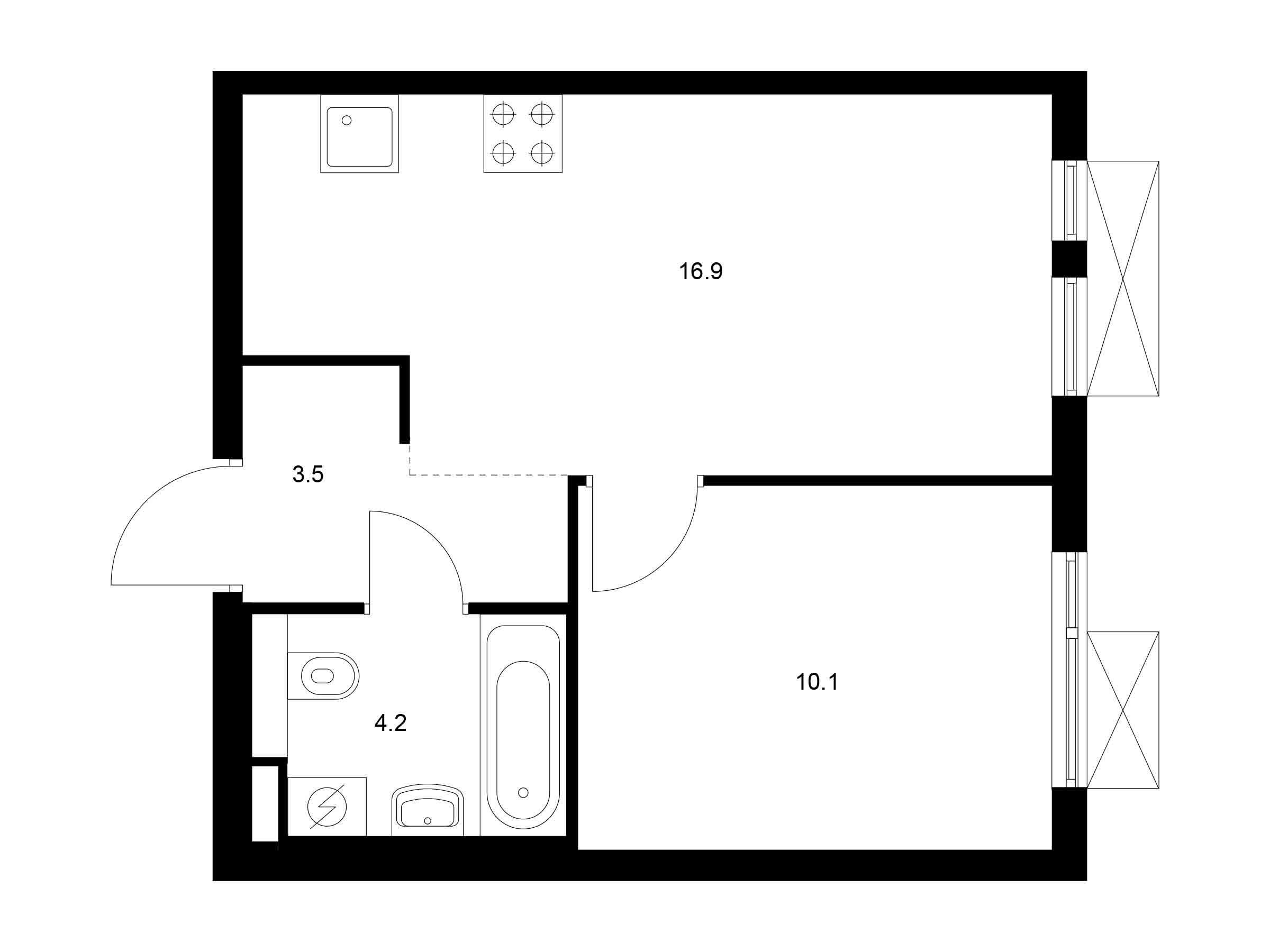 1-комнатная, 39.80 м²