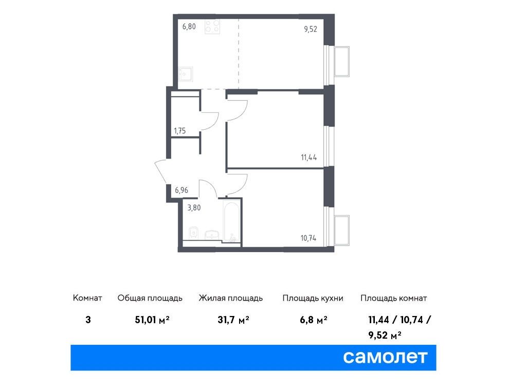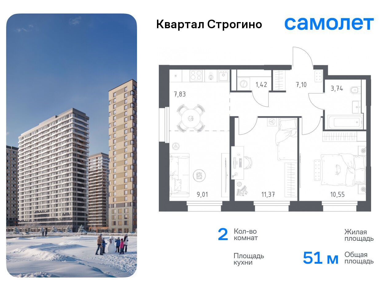 2-комнатная квартира, 50.88 м², 5 из 24 эт.
