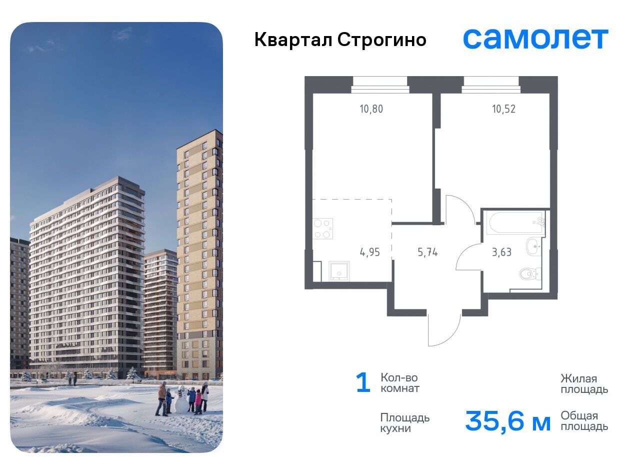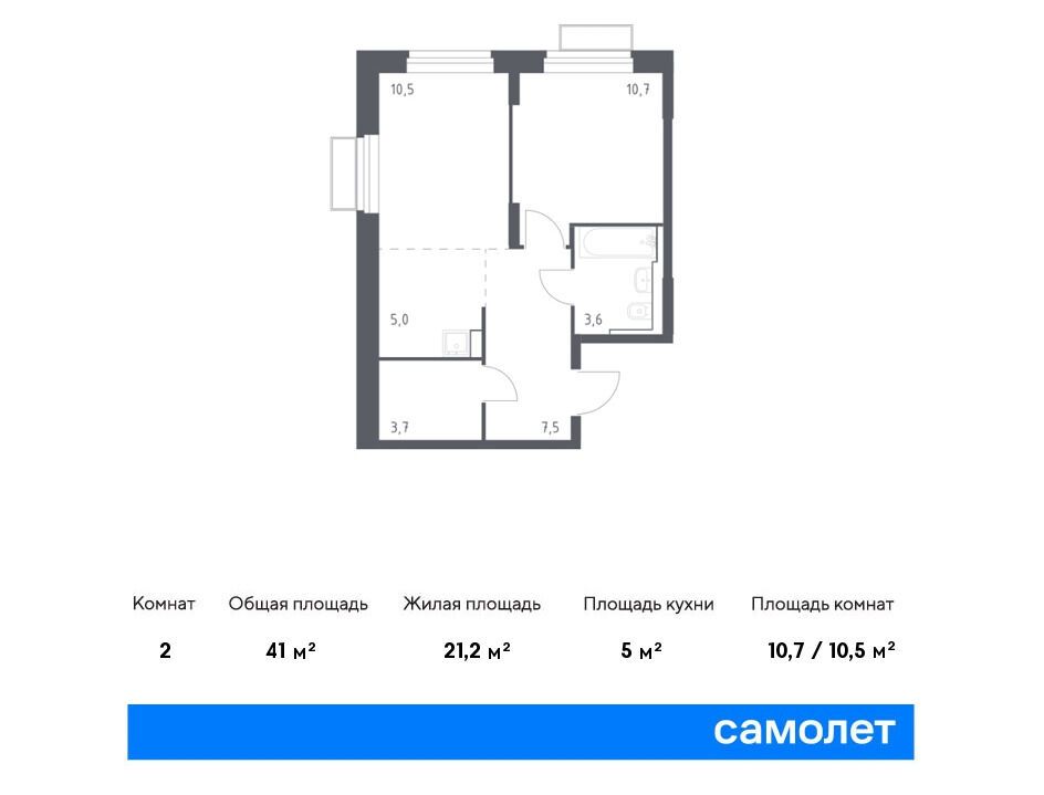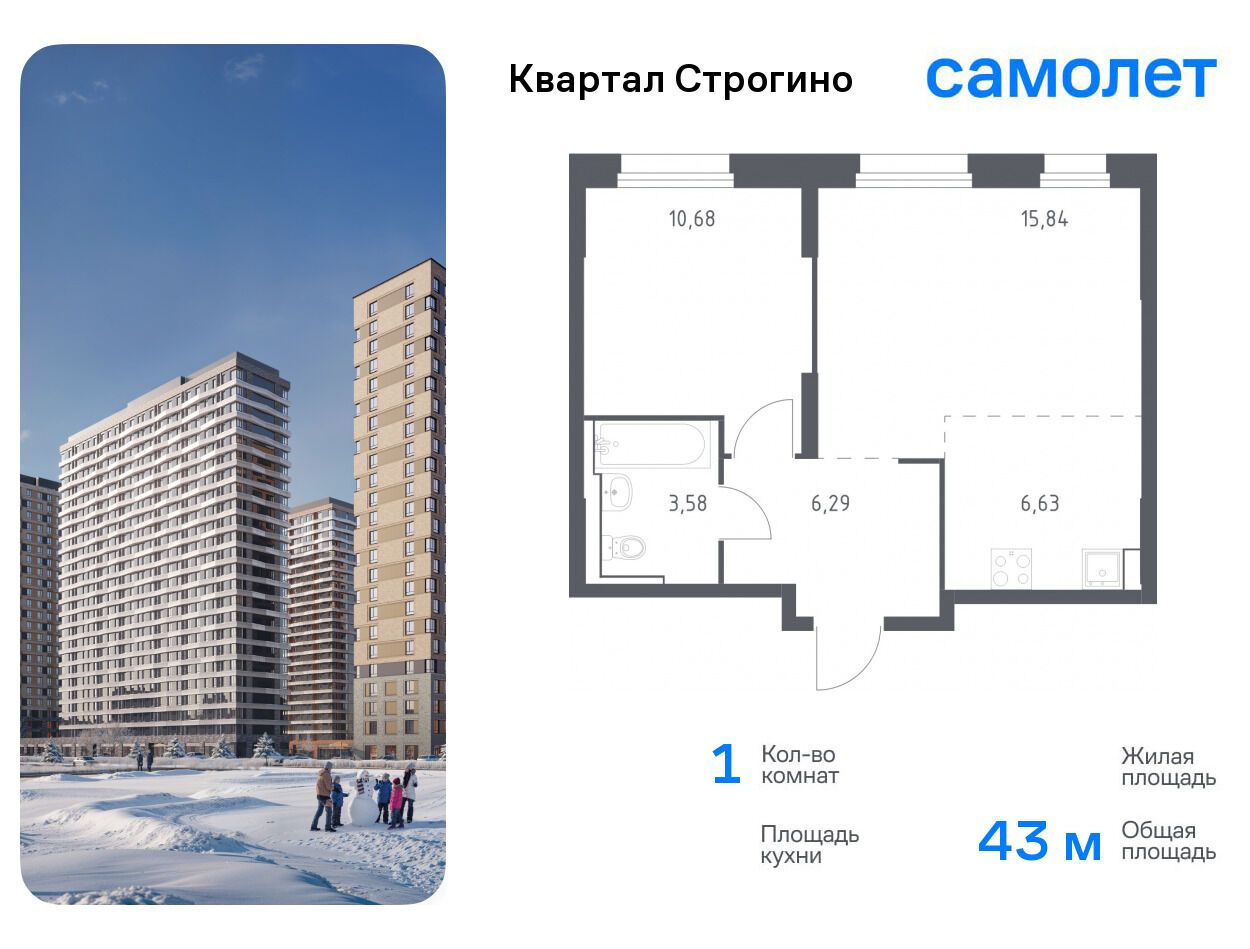 1-комнатная квартира, 40.91 м², 11 из 24 эт.