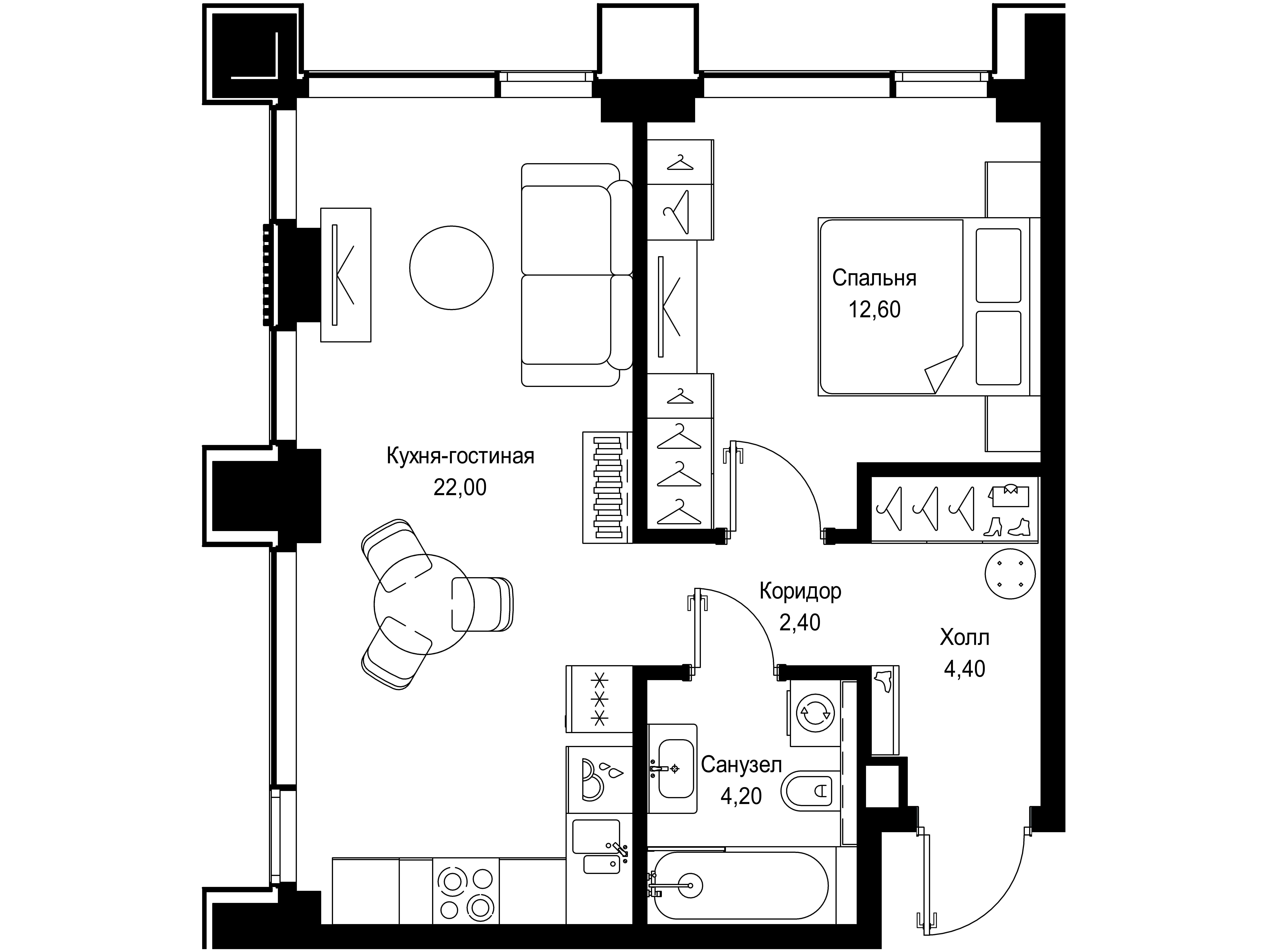 1-комнатная квартира, 41.20 м², 21 из 36 эт.