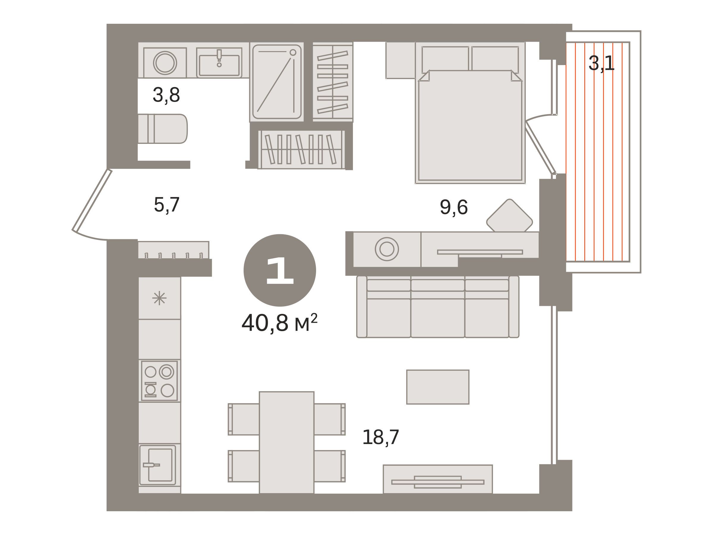 1-комнатная квартира, 36.00 м², 3 из 4 эт.