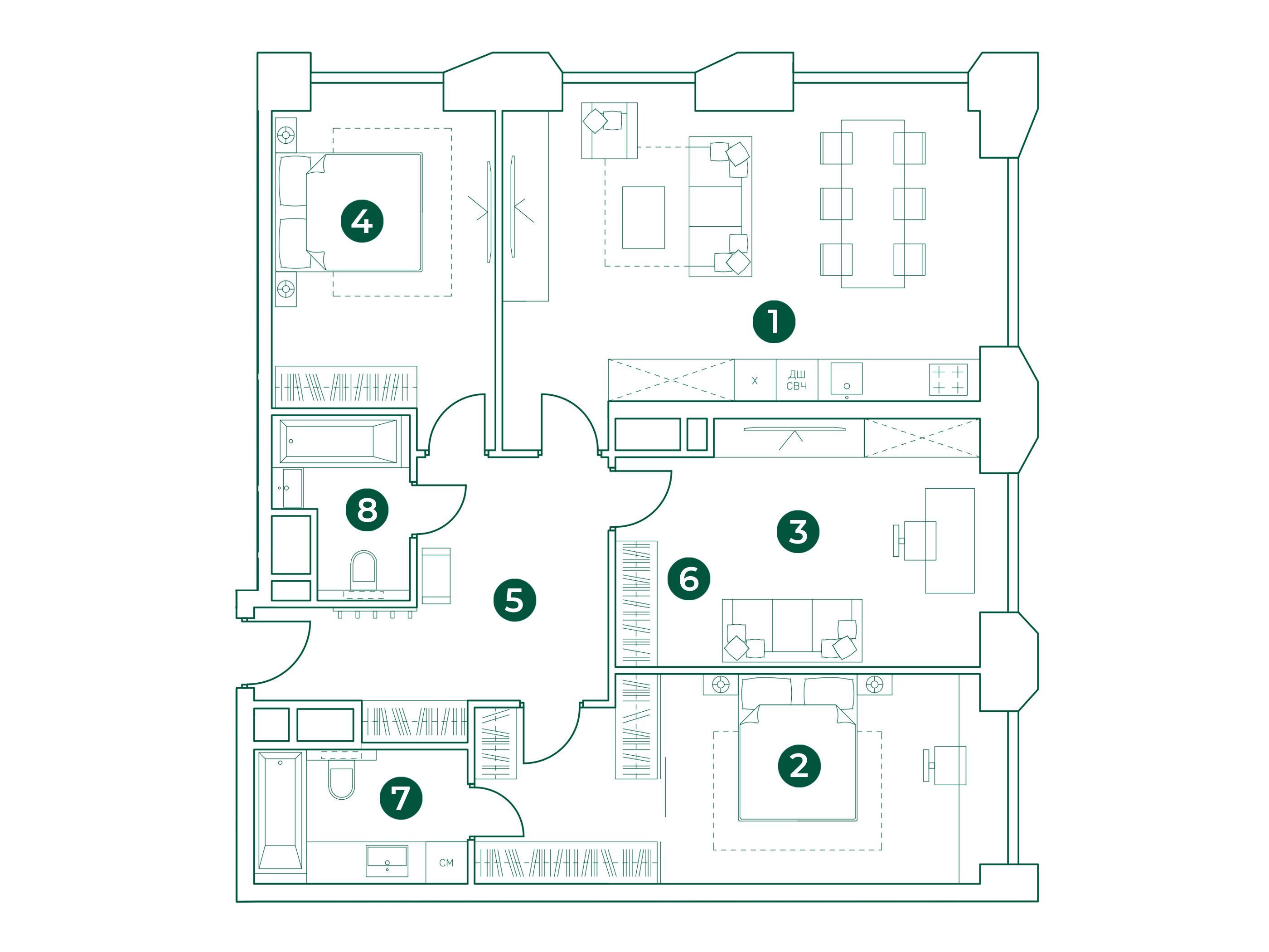 4-комнатная, 125.40 м²